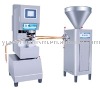 Suits straight-filling artificial, collagen, cellulose or linking natural casings. High weight accuracy, effective production output. Systematically with the clipper of various types, enjoy the benefit of automation production for your business. Easy to clean using standard cleaning equipment. Removable covers on two sides of the machine make the inside of the machine easily accessible for any maintenance work. The favourable inclination of the hopper walls facilitates day-to-day work, as the Lifter unit pumps the hopper completely empty apart from minimal residues. For automatic feeding, the ZKG series can be optional fitted with a lifting and tipping device which the operator controls using the relevant keys next to the portioning computer. Vacuum Stuffer ZKG is built with a combination of Japan YASKAWA servo motor and Italy BONFIGILION (German) decelerator as its drive system, also featuring its man-machine interface from Taiwan, Japan Mitsubishi PLC and Germany Busch vacuum pump. Key parts produced by machine center with high precision. All of pump, impeller and blade have are adopted the special heat treatment technique, highly smooth surface, easily to be cleaned up. Model : ZKG-7500 Quantitative Range (g) :6---99999 Power (KW): 8.3 Deviation (minced meat) (g): ±2 Hopper Volume (L) :240 Rated Voltage (v):380 Weight (Kg) :830 Dimensions (mm): 2420×1180×1850